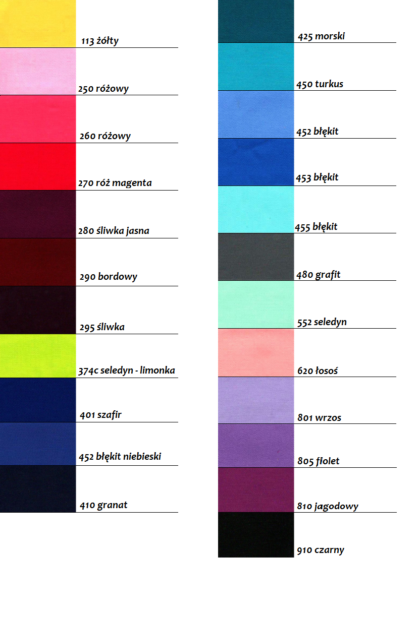 Tkanina przeznaczona na odzież zawodową zarówno w przemyśle spożywczym, jak również w hotelarstwie czy medycynie. Doskonała również na lekkie ubrania letnie. Mocna, wytrzymała, zachowująca trwałość barw.