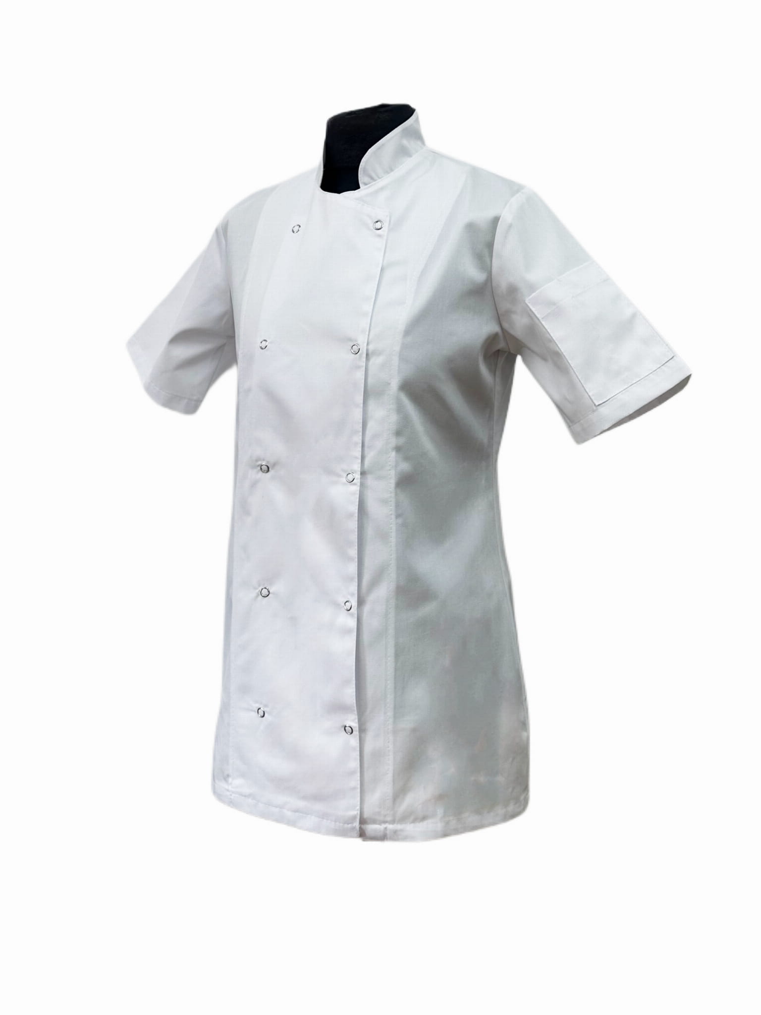 Model dostępny jest w klasycznych kolorach: białym oraz czarnym, dzięki czemu z łatwością dopasujesz go do charakteru lokalu i pozostałych elementów stroju. Krótkie rękawy zapewniają wygodę oraz swobodę ruchów podczas intensywnej pracy w kuchni.