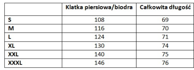Tabela rozmiarów bluzy