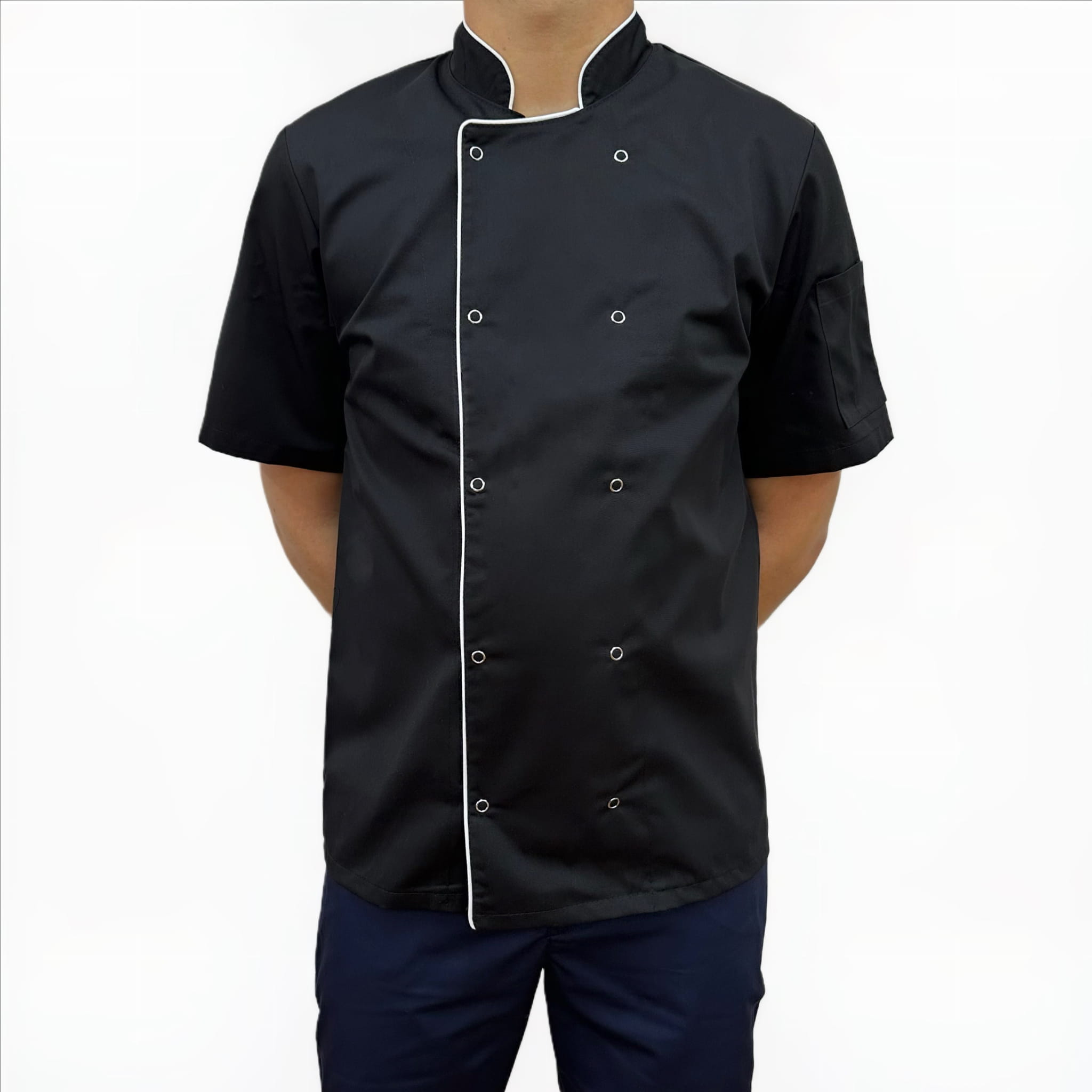 Bluza kucharska to połączenie wygody i profesjonalnego wyglądu w kuchni. Wykonana z wysokiej jakości tkaniny (35% bawełna, 65% poliester), jest przewiewna, elastyczna i trwała. Posiada krótki rękaw oraz praktyczne zapięcie na napy, które ułatwia użytkowanie.