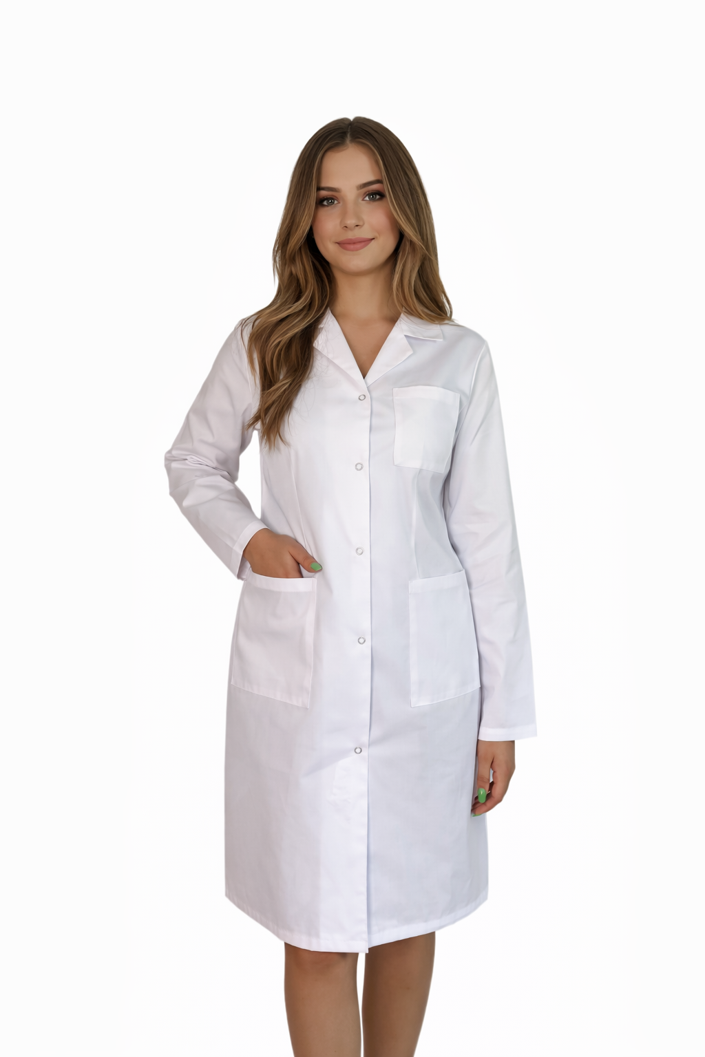 Biały fartuch medyczny z długim rękawem – klasyka i funkcjonalność w jednym