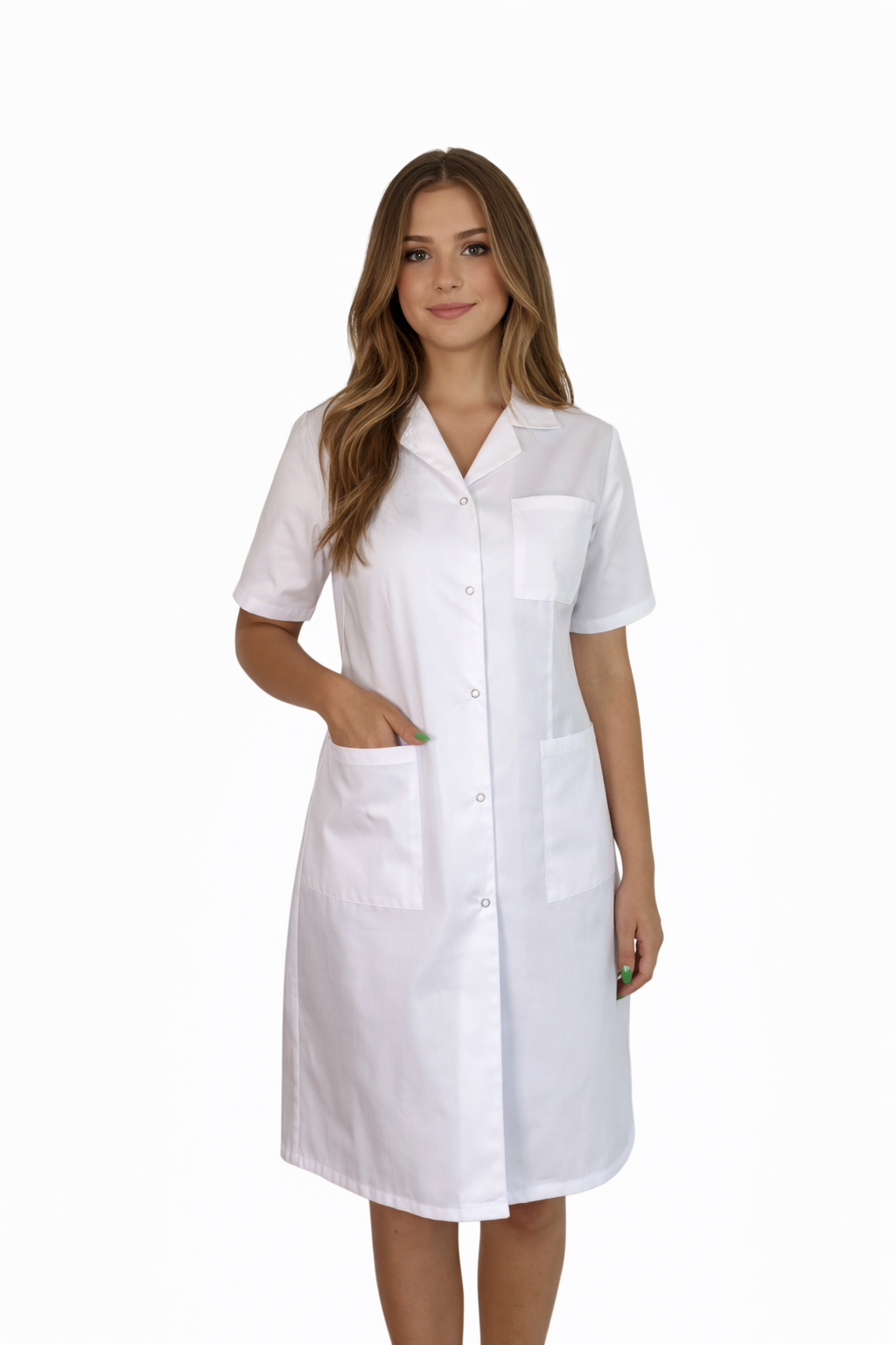 Biały fartuch medyczny z krótkim rękawem – klasyka i funkcjonalność w jednym