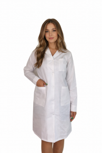 Profesjonalny fartuch ochronny, idealny do pracy w laboratoriach, szkołach, pracowniach chemicznych, medycznych czy kosmetycznych. Wykonany w 100% z naturalnej bawełny, zapewnia komfort, swobodę ruchów oraz przewiewność podczas długiego użytkowania.