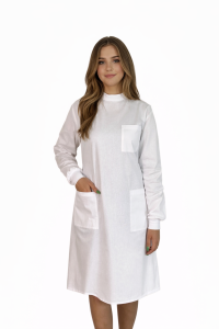 Specjalistyczny fartuch ochronny przeznaczony do pracy w trudnych warunkach – w prosektoriach, zakładach anatomii, medycynie sądowej, weterynarii oraz wszędzie tam, gdzie wymagane jest maksymalne zabezpieczenie przed zabrudzeniami i wilgocią.