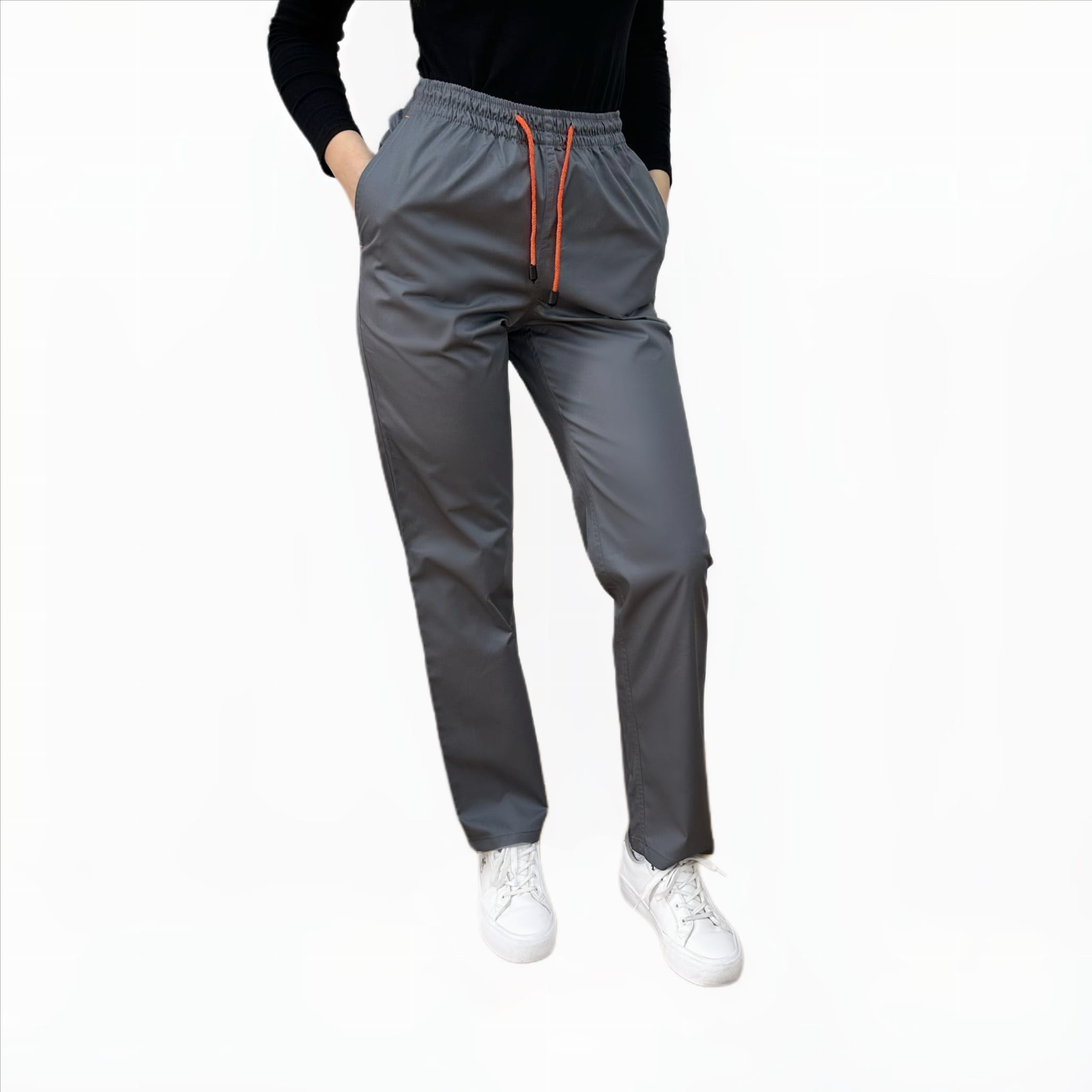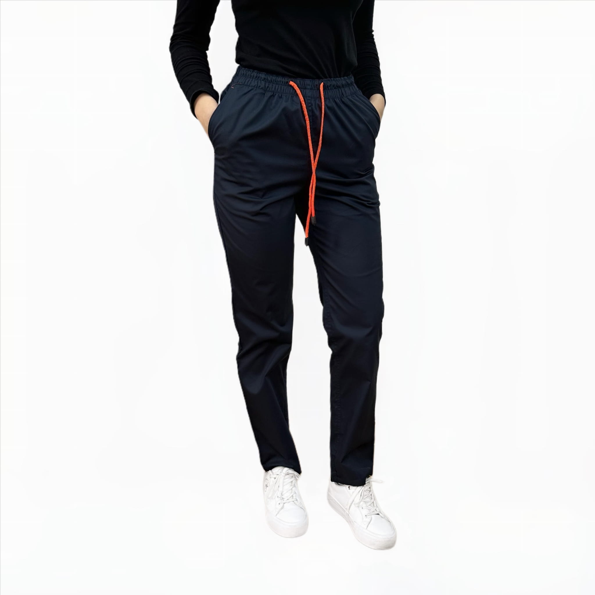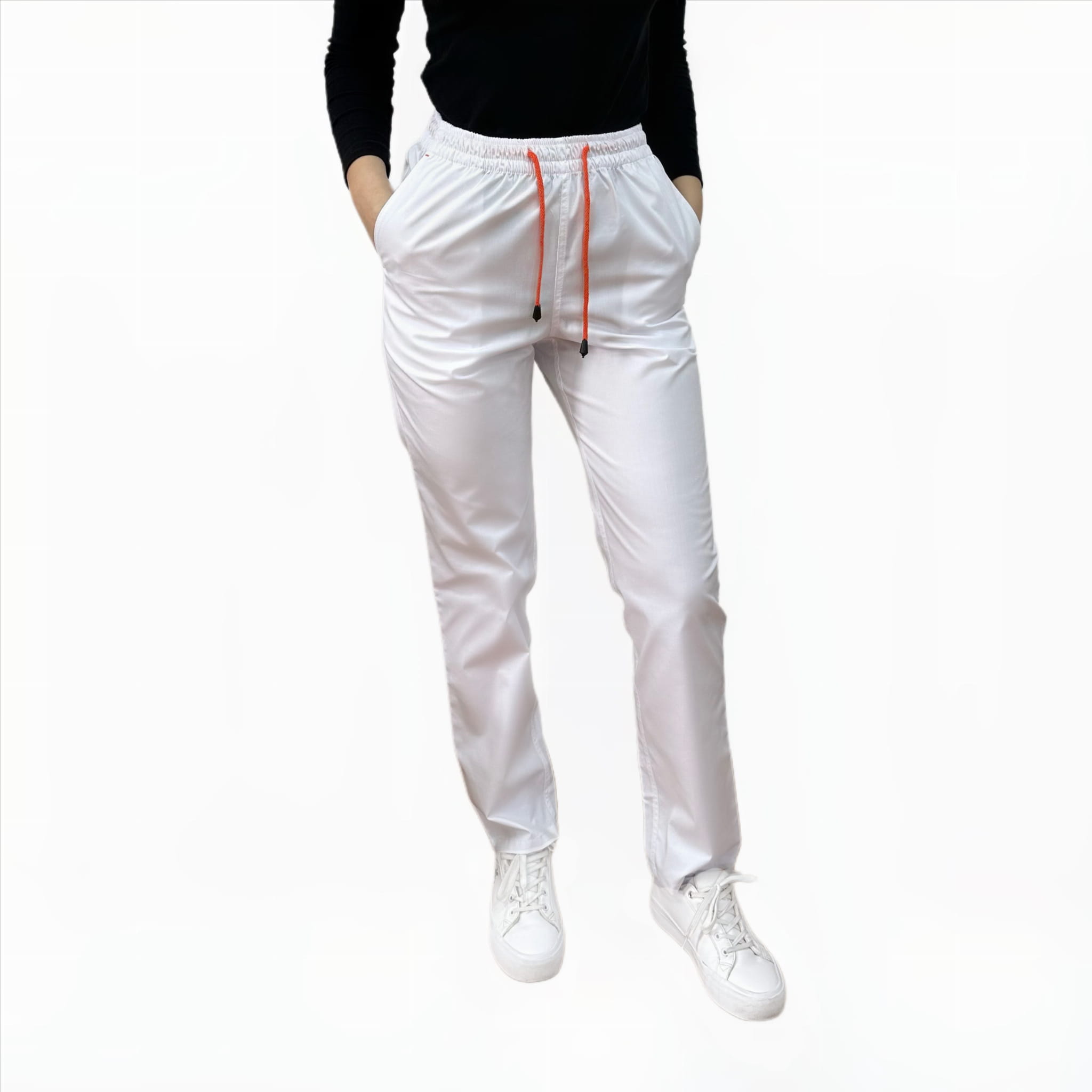 Dzięki elastycznemu materiałowi spodnie doskonale dopasowują się do ciała, gwarantując komfort noszenia przez cały dzień. Trok oraz gumka w pasie umożliwiają indywidualne dopasowanie do sylwetki, zapewniając wygodę i stabilność podczas użytkowania.