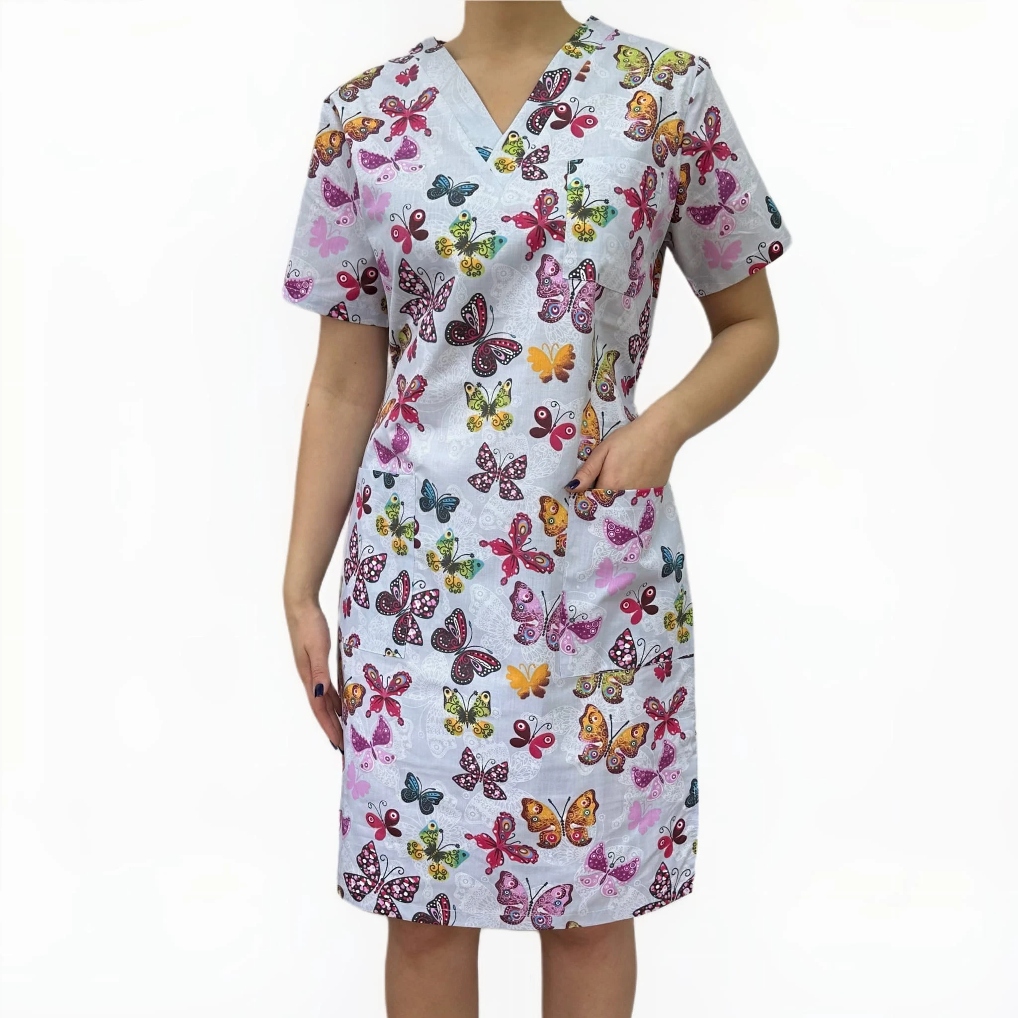 Praktyczna i stylowa sukienka medyczna to idealny wybór dla pielęgniarek, położnych, farmaceutek, a także pań pracujących w branży beauty – spa, wellness czy klinikach medycyny estetycznej. Łączy profesjonalny wygląd z komfortem noszenia przez cały dzień.