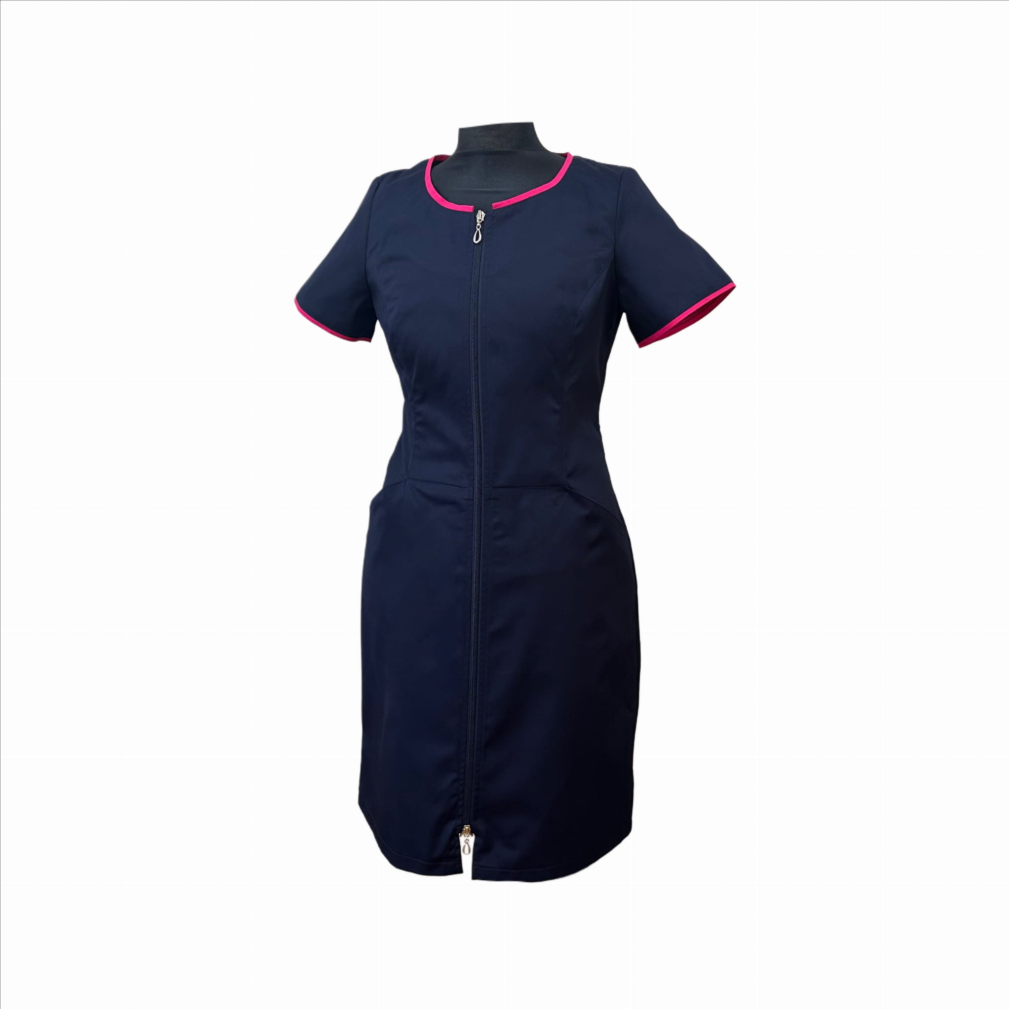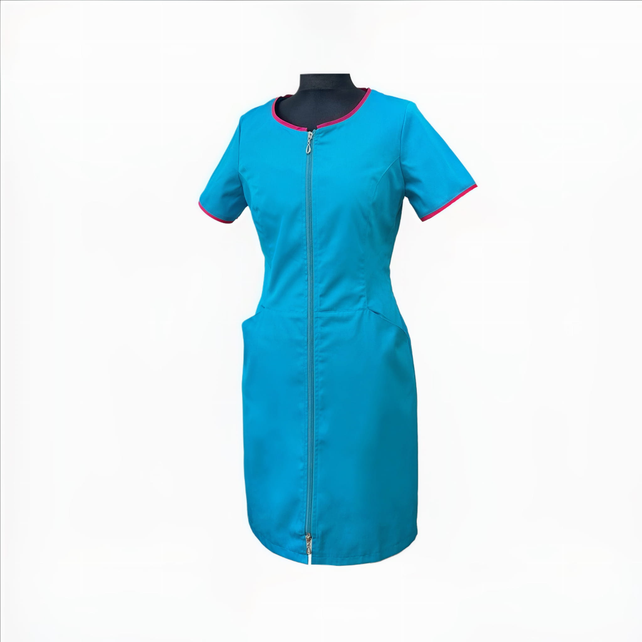 Sukienka medyczna stworzona z myślą o kobietach pracujących w branżach, gdzie liczy się zarówno komfort, jak i estetyka wyglądu. Doskonale sprawdzi się w pracy pielęgniarki, położnej, farmaceutki, a także w salonach SPA, wellness czy klinikach medycyny estetycznej.