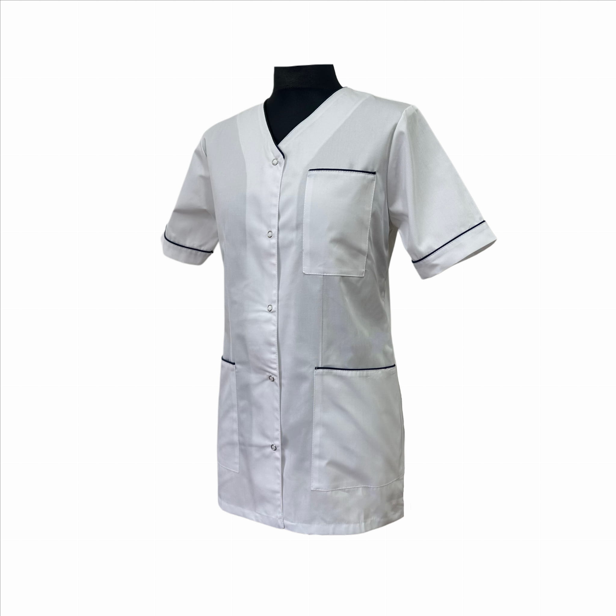 Profesjonalny i stylowy żakiet medyczny stworzony z myślą o osobach pracujących w służbie zdrowia, kosmetologii lub branży wellness. Nowoczesny fason łączy elegancję i funkcjonalność, dzięki czemu sprawdzi się idealnie zarówno w szpitalu, gabinecie lekarskim, jak i salonie kosmetycznym.