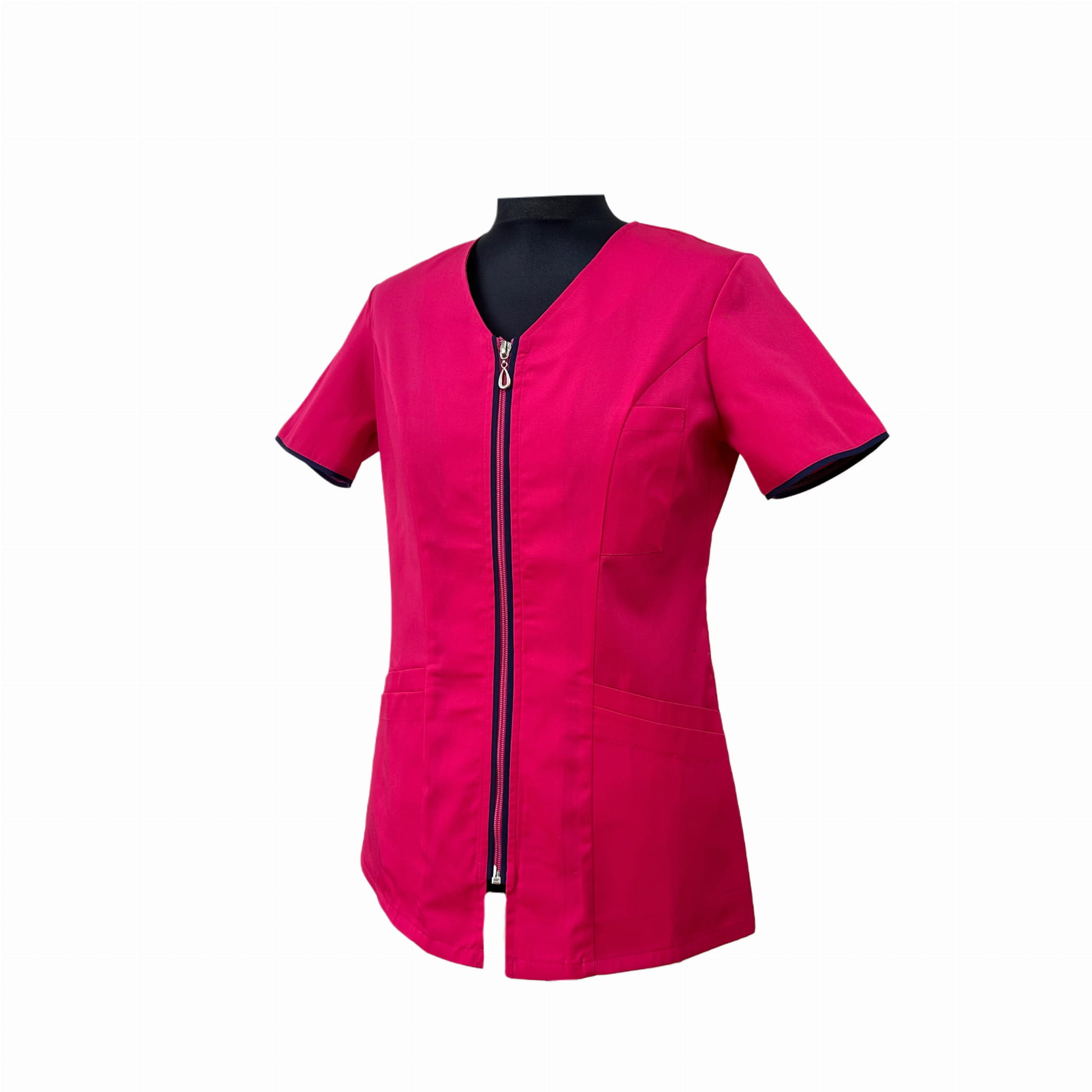 - Kieszenie: jedna kieszeń na lewej piersi – idealna na długopis, identyfikator lub notatki, dwie praktyczne kieszenie na wysokości bioder