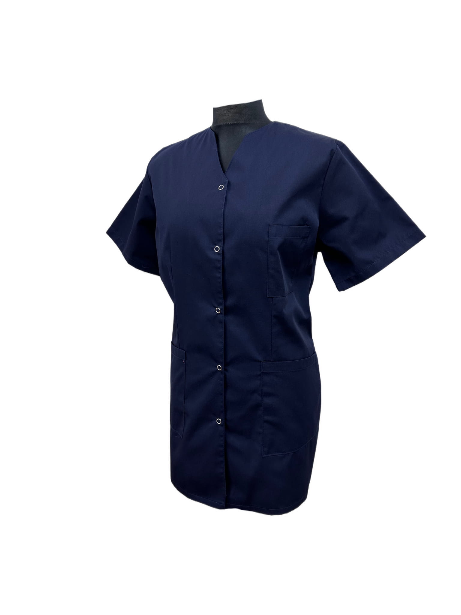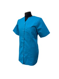 Taliowany krój subtelnie podkreśla kobiecą sylwetkę, zachowując przy tym pełen komfort i profesjonalny wygląd. Zapięcie na napy jest praktyczne i wygodne w codziennym użytkowaniu. Rękawy krótki podnoszą komfort pracy i nadają żakietowi lekkości.