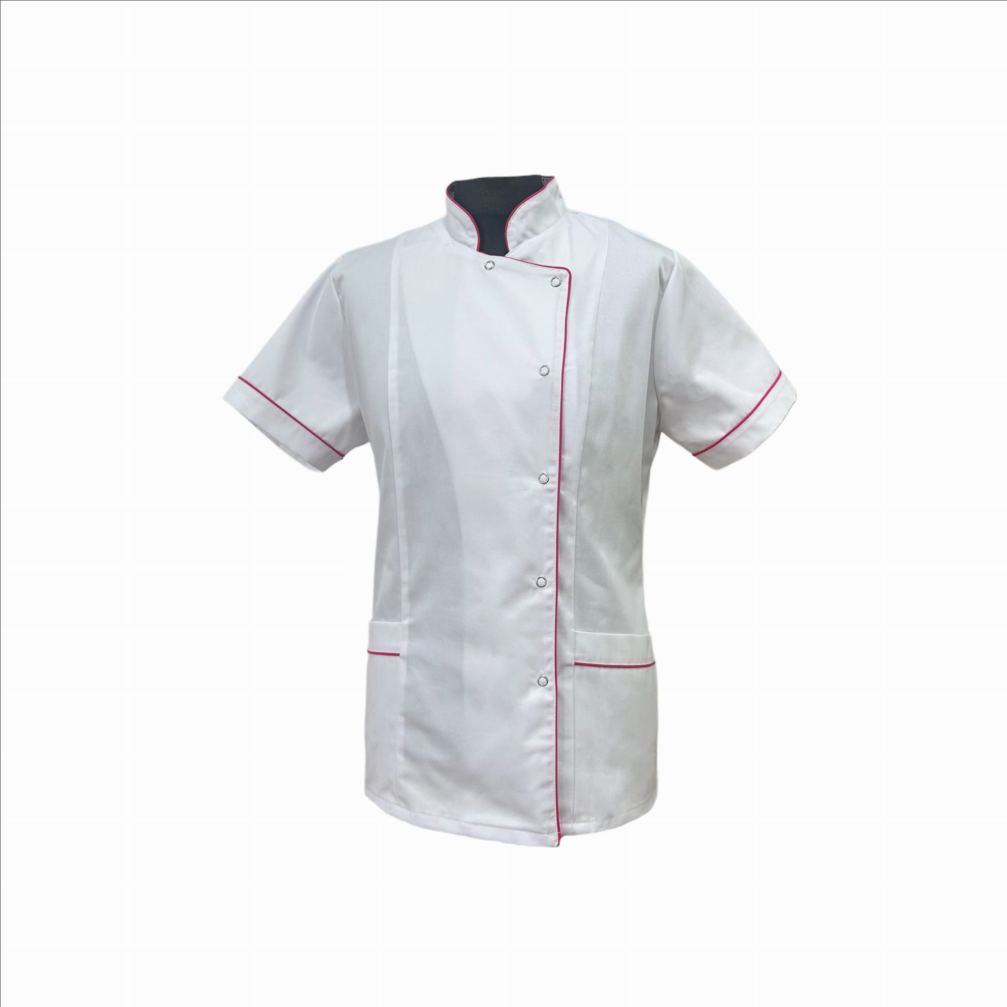 Stworzona z myślą o profesjonalistkach w kuchni, damska bluza kucharska łączy wygodę, trwałość oraz stylowy, kobiecy krój. Idealna dla szefowych kuchni, kucharek, cukierniczek i uczennic szkół gastronomicznych, które cenią sobie komfort pracy i nienaganny wygląd.