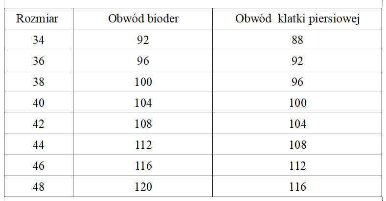 Podane w tabeli wymiary to wymiary żakietu po uszyciu.